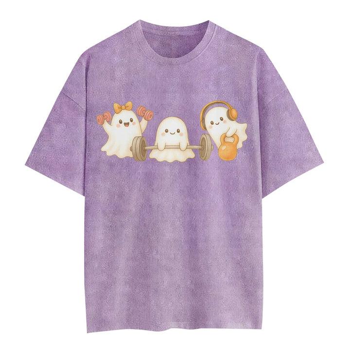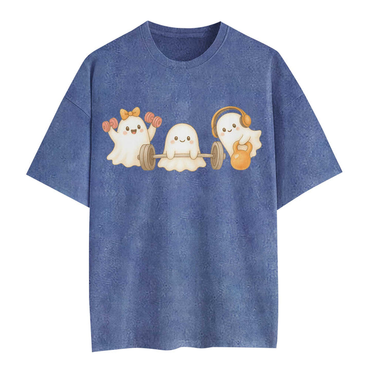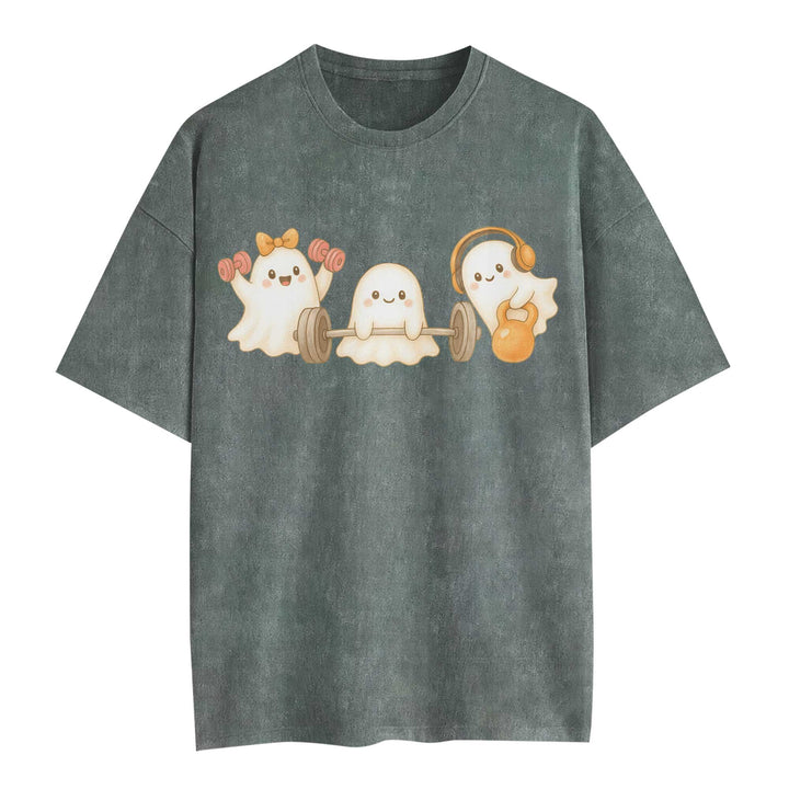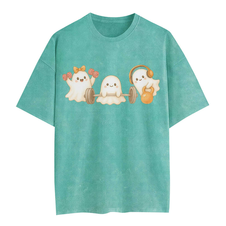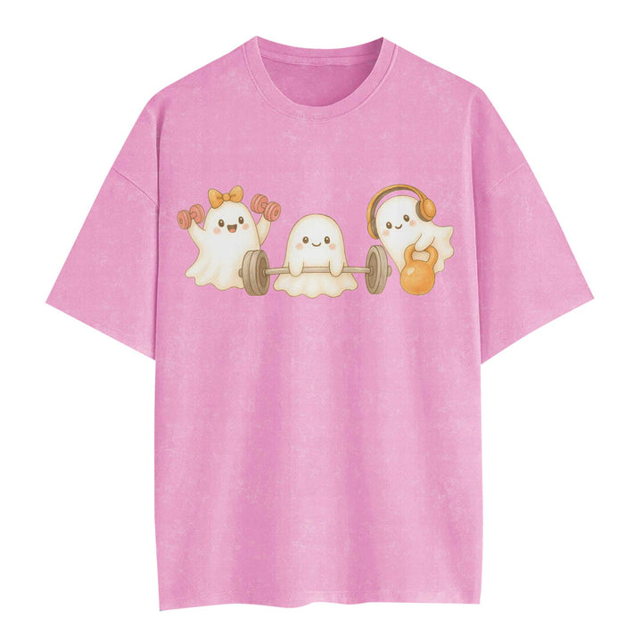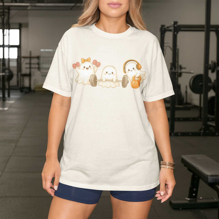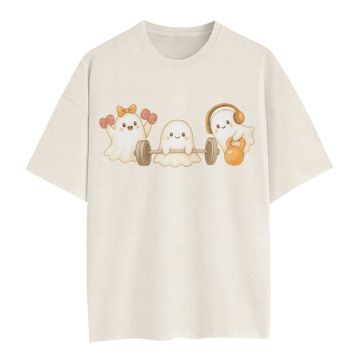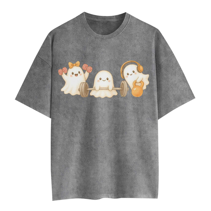 Ghost Lifting Halloween Women's Gym T-Shirt, Workout Shirt, Oversized Pump Cover Tee