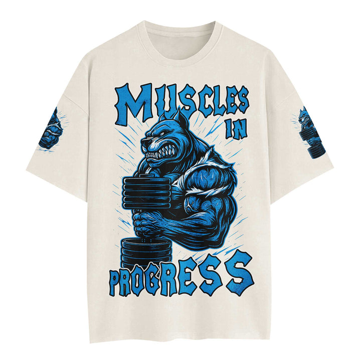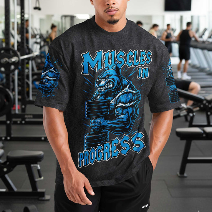 Muscles In Progress Men's Gym T-Shirt, Workout Shirt, Oversized Pump Cover Tee