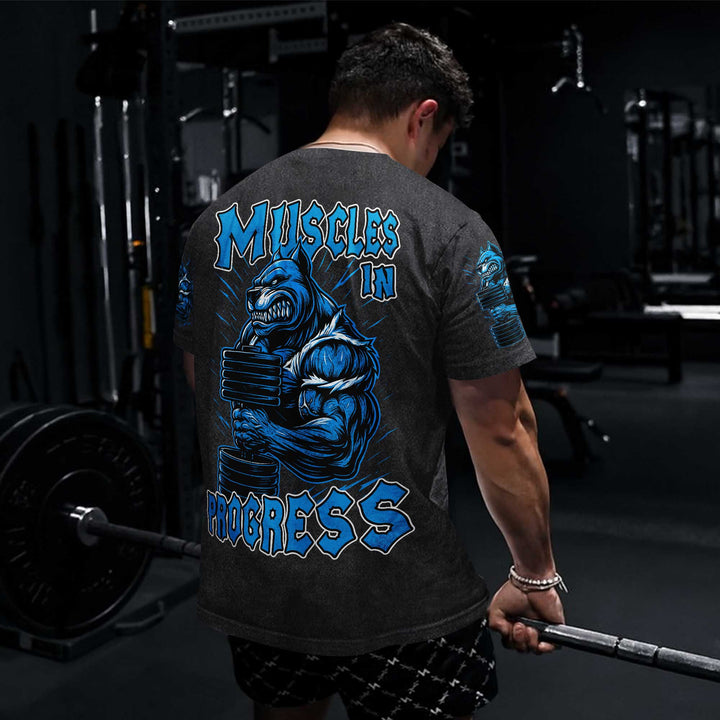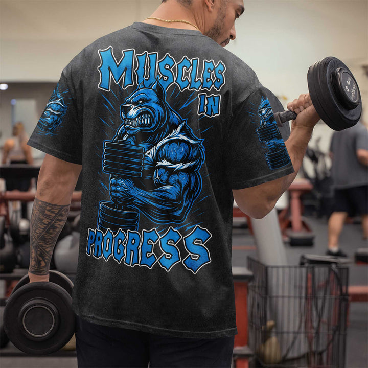 Muscles In Progress Men's Gym T-Shirt, Workout Shirt, Oversized Pump Cover Tee