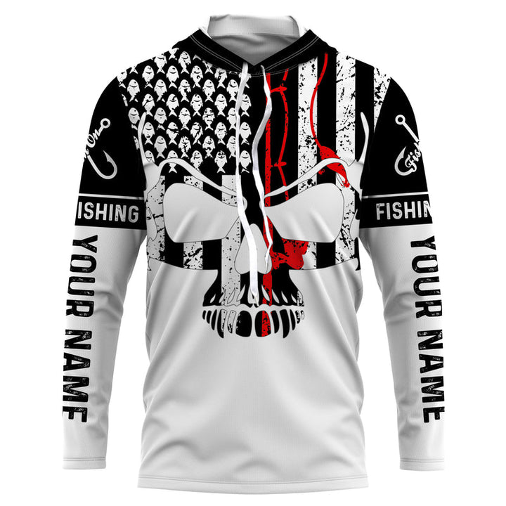 Vintage Fishing American Flag Skull Personalized Men Women Long Sleeve Shirt Custom Fishing Apparel