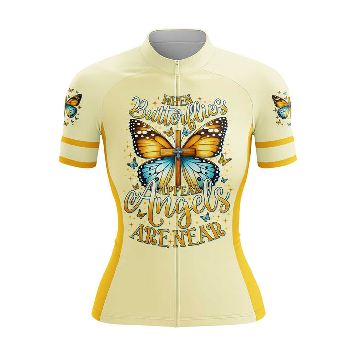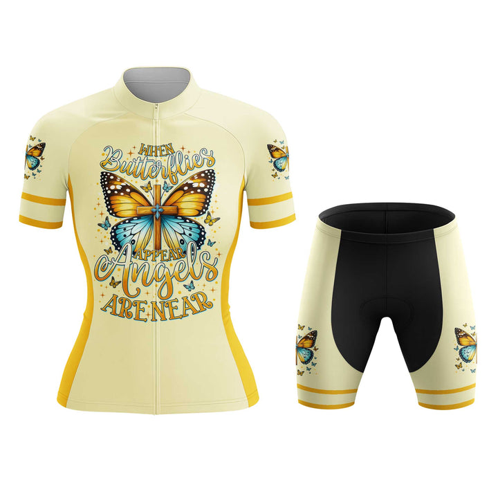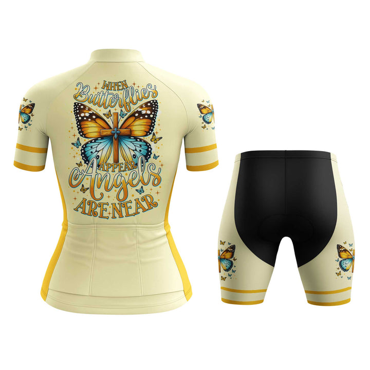 When Butterflies Appear Angels Are Near Women's Cycling Jersey Set, Road Bike Cycling Kit for Women, Biking Outfit, Bicycle Suit, Team Racing Uniform