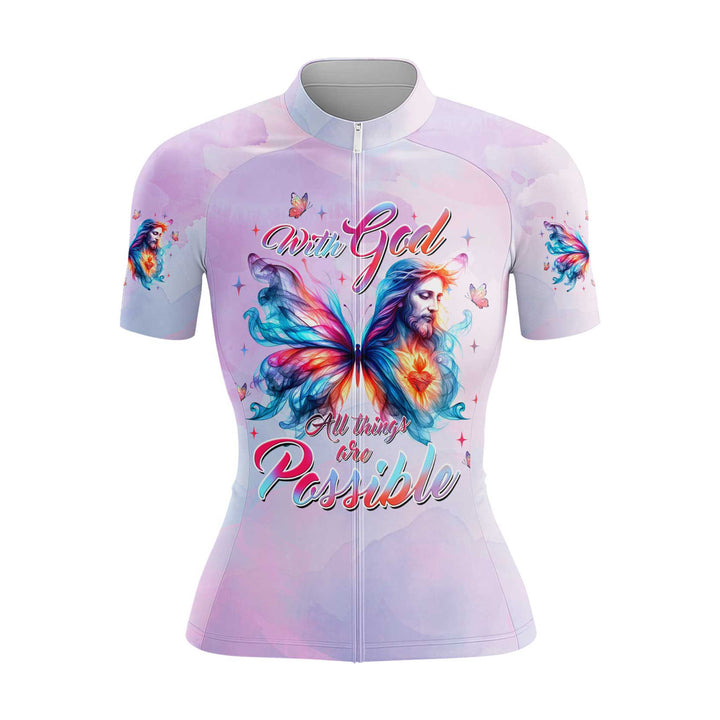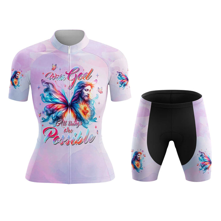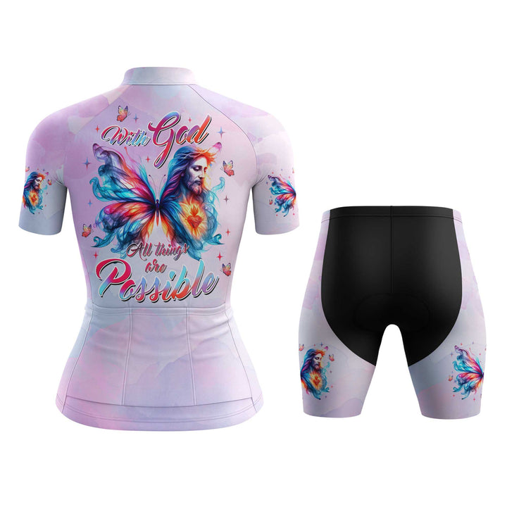 With God All Things Are Possible Women's Cycling Jersey Set, Road Bike Cycling Kit for Women, Biking Outfit, Bicycle Suit, Team Racing Uniform