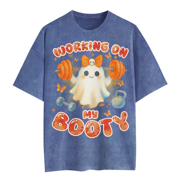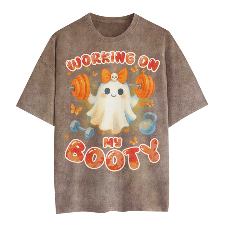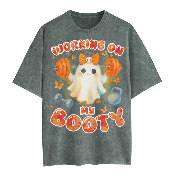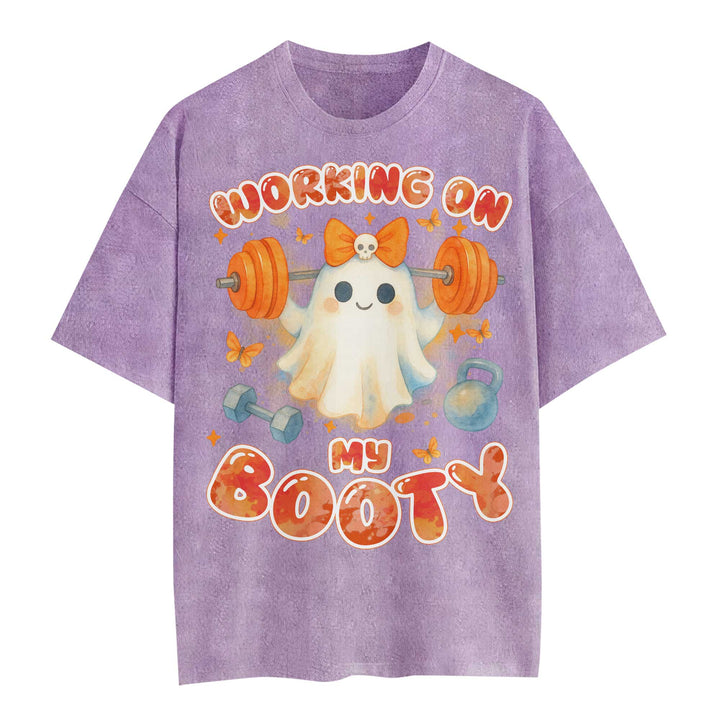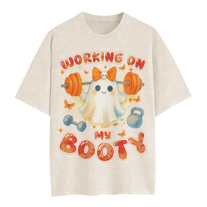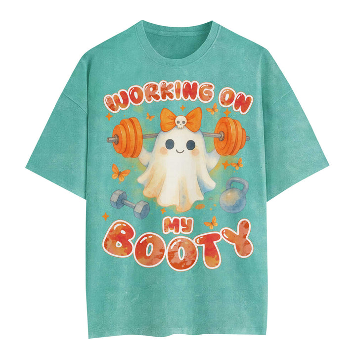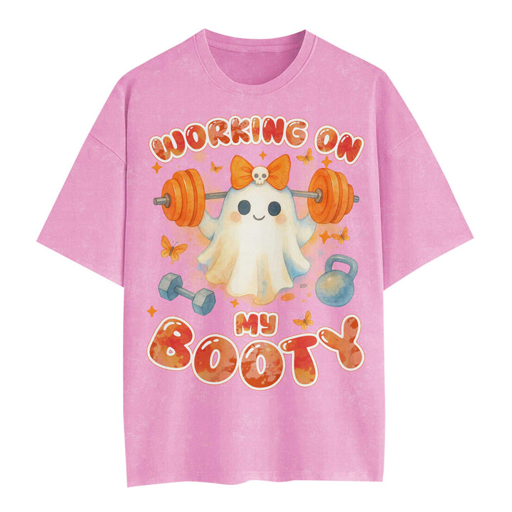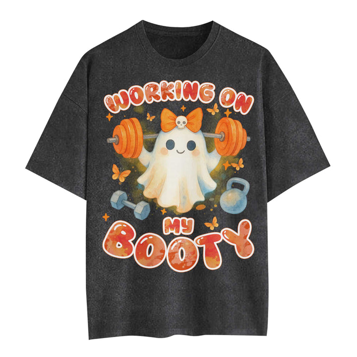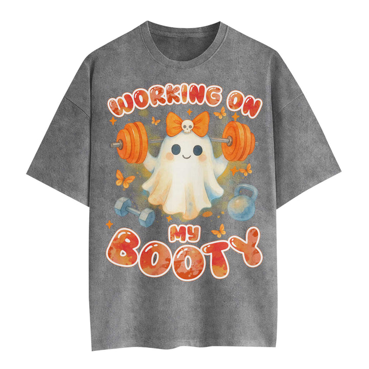 Working On My Booty Halloween Women's Gym T-Shirt, Workout Shirt, Oversized Pump Cover Tee
