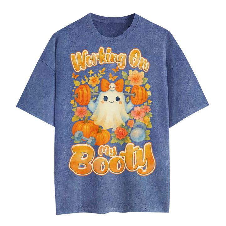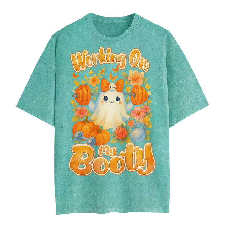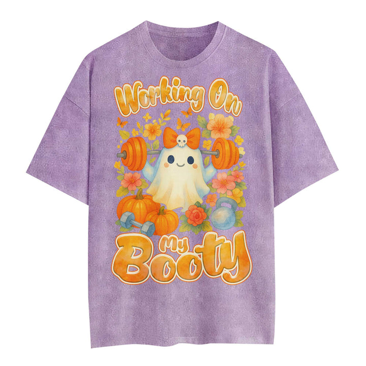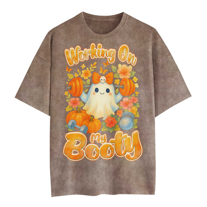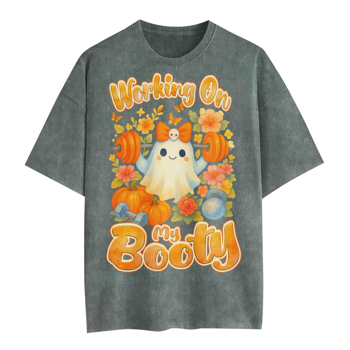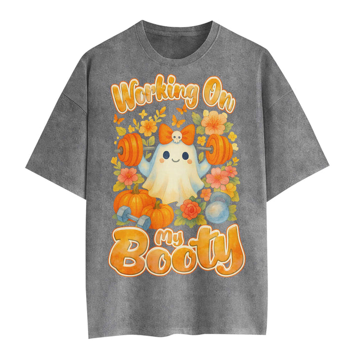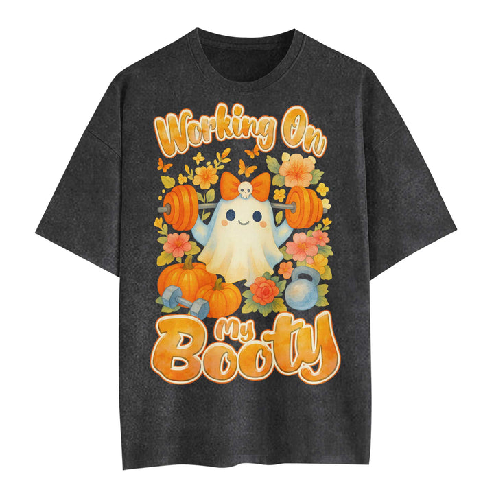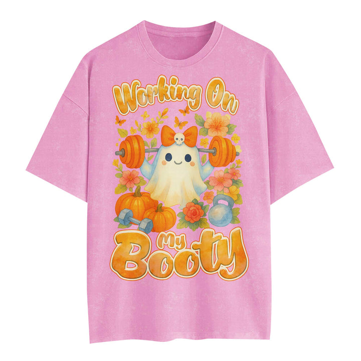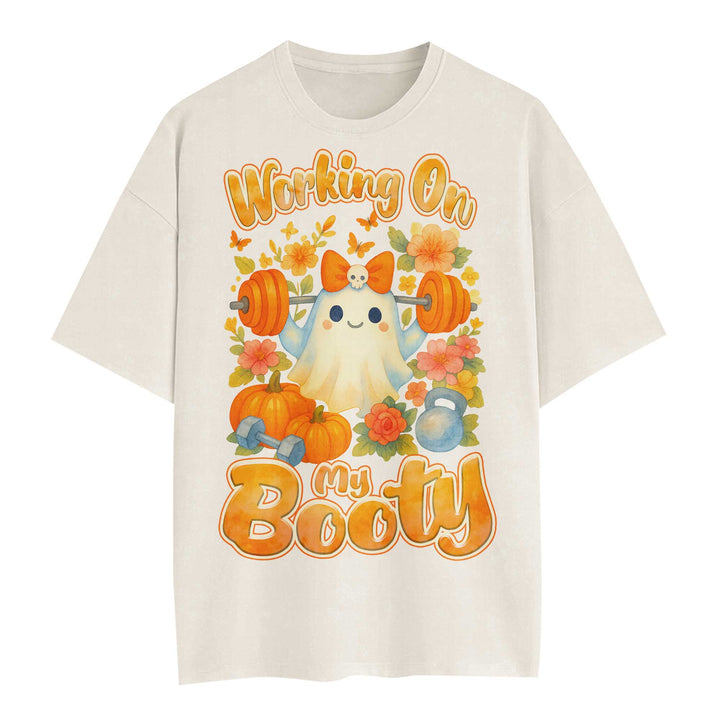 Working On My Booty Halloween Women's Gym T-Shirt, Workout Shirt, Oversized Pump Cover Tee