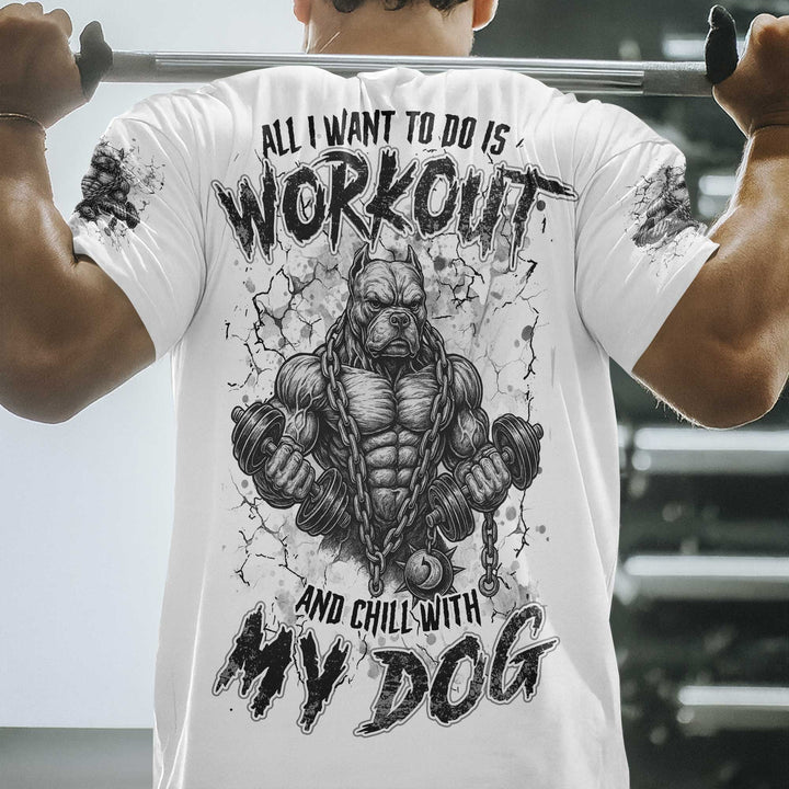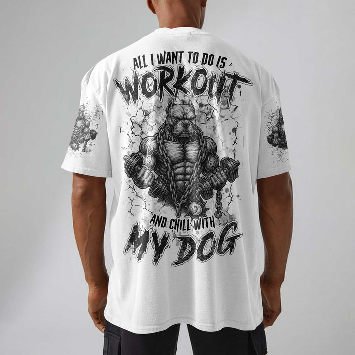 Workout And Dog Men's Gym T-Shirt, Workout Shirt, Oversized Pump Cover Tee