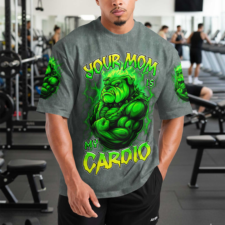 Your Mom Is My Cardio Men's Gym T-Shirt, Workout Shirt, Oversized Pump Cover Tee